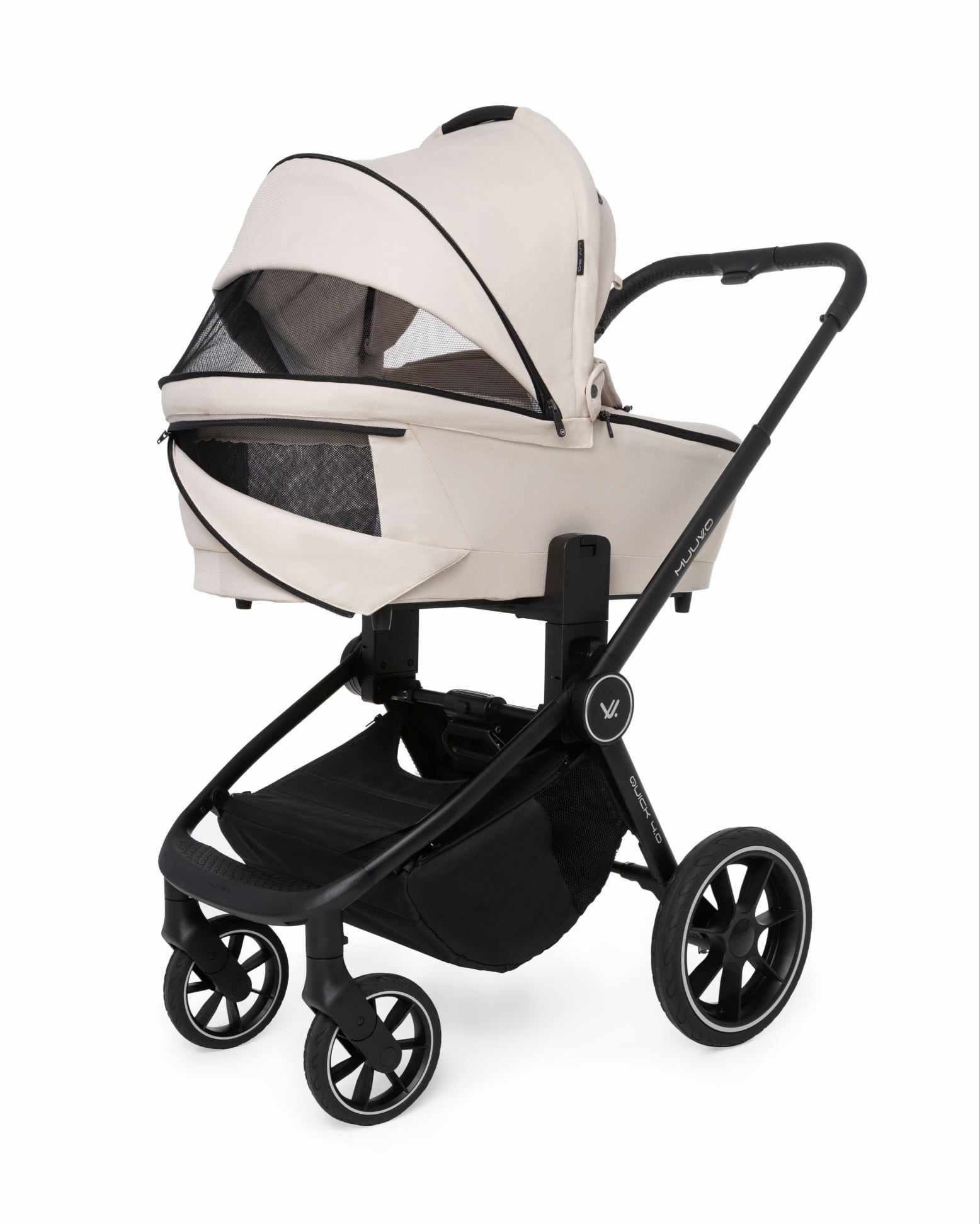 Potpuno nova kolica s ventiliranim naslonom, opremljena su glatkom regulacijom pojasa i podesivom visinom baldahina, čime pružaju izvrsnu udobnost za djecu svih uzrasta. U Quicku 4.0 sigurnosni pojasevi u pet točaka obogaćeni su magnetskom kopčom koja olakšava njihovo brzo vezivanje.