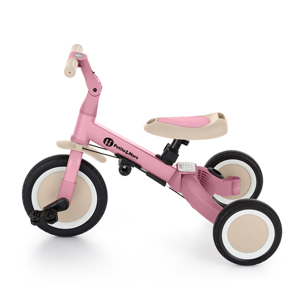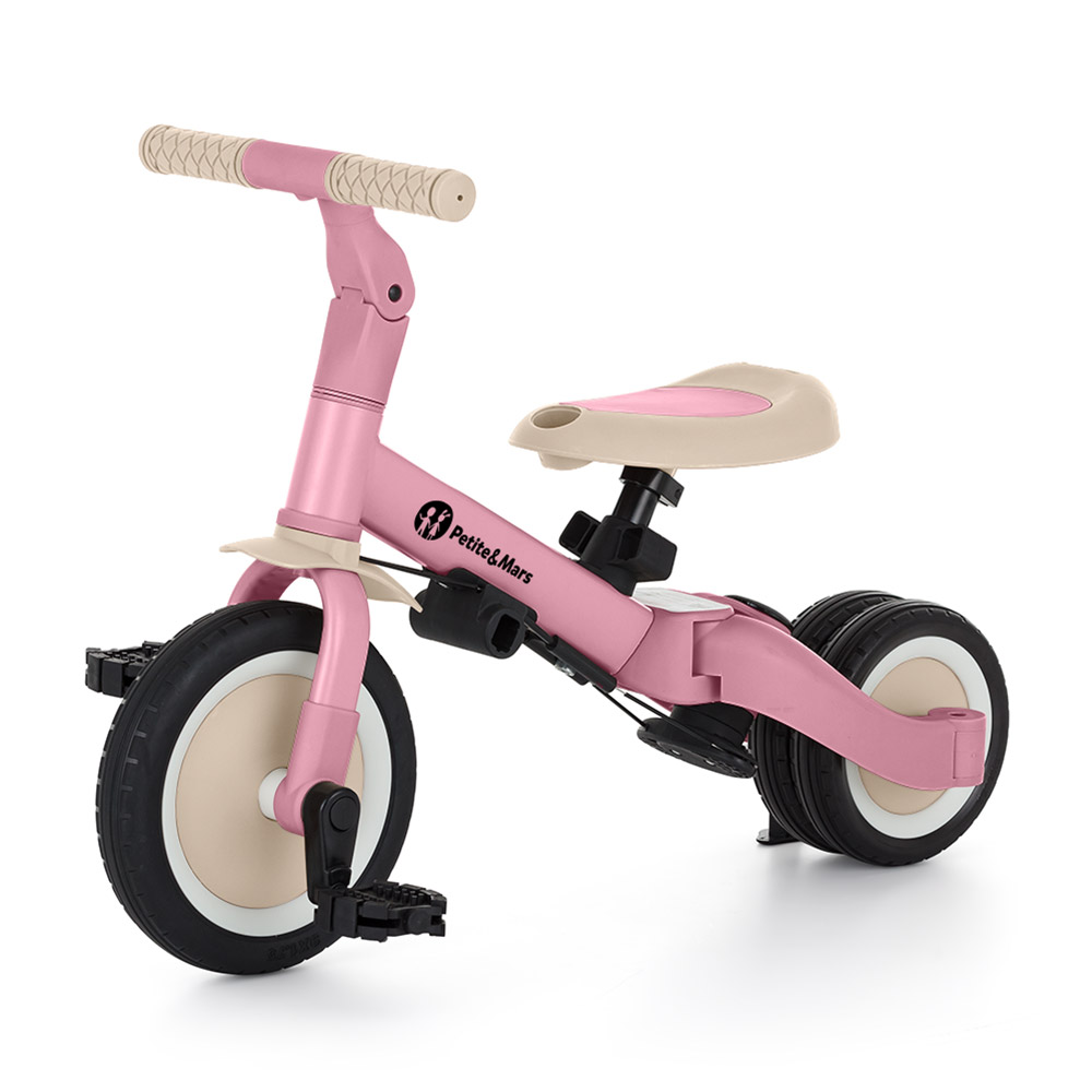Dobro promišljena transformacija bicikla prilagođava se potrebama mališana kako njegove motoričke sposobnosti rastu. U početku je riječ o triciklu s mogućnošću pomoći roditelja, dok je konačna verzija standardni bicikl s pedalama, bez dodatnih potpornih elemenata.