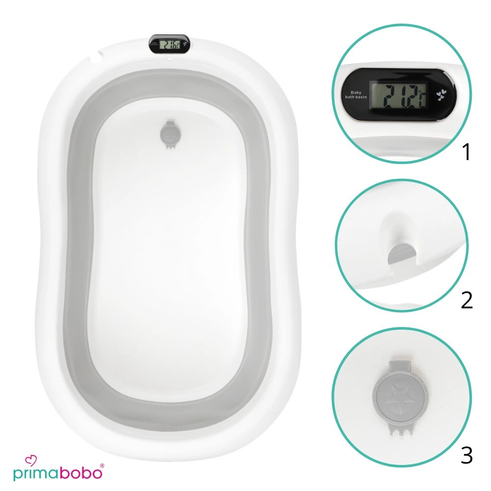 Elektronički termometar omogućit će vam precizno određivanje temperature vode. Uvijek bi trebala biti oko 37 stupnjeva. Jastuk za kupanje bebe rasteretit će roditeljske ruke i podržati bebu u mekom sjedalu. Sklopljena lako će stati u skučene prostore u stanu.