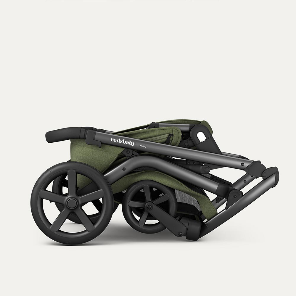 NUVO kolica su jedina dječja kolica koja se mogu sklopiti kada su dva sjedala montirana na konstrukciju.