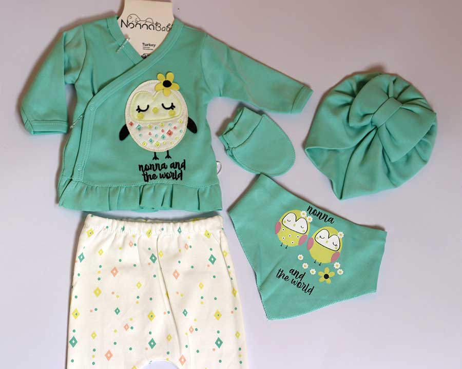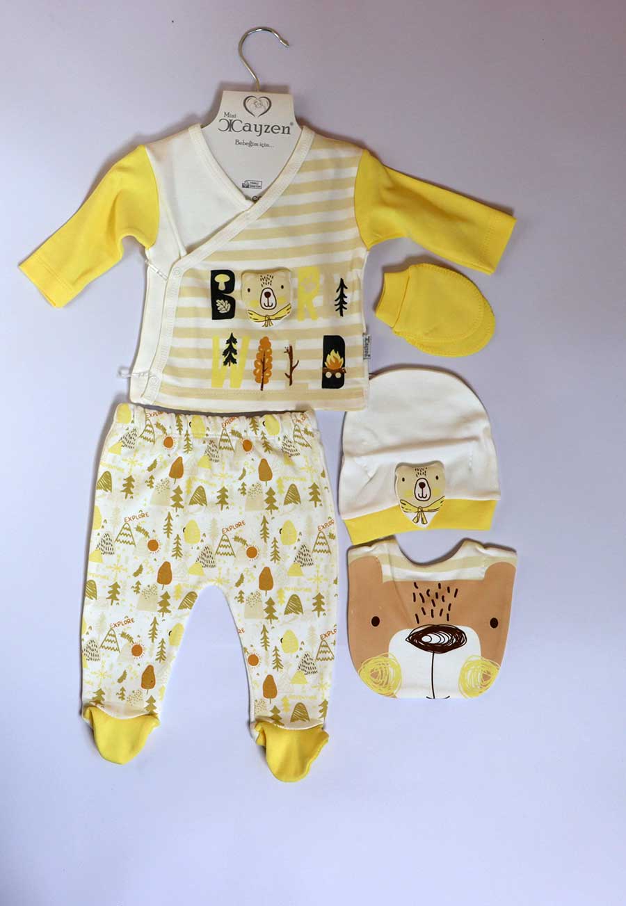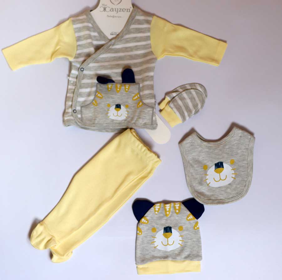 Ovaj 5/1 set za izlazak iz bolnice sadrži benkicu, hlače, slinček, kapicu i rukavice. Set se koristi skroz do drugog mjeseca rođenja čak i dulje. Odličan je za poklon kao i za prvo vrijeme, lako se oblači i skroz je praktičan.