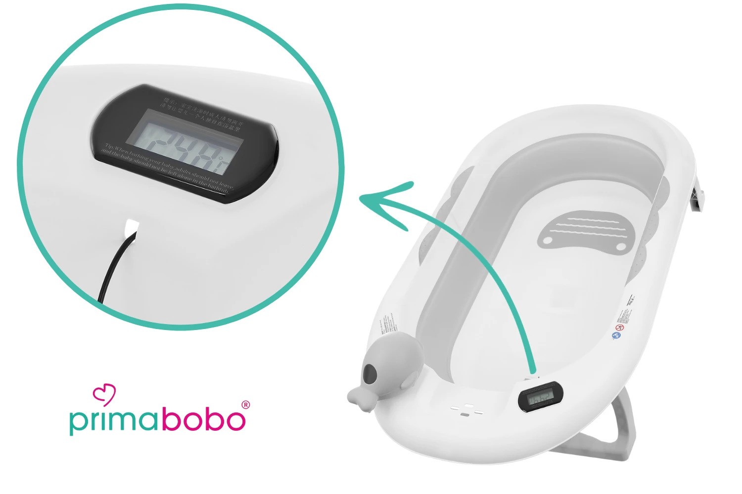 - Kadica je opremljena elektroničkim senzorom temperature koji vam omogućuje precizno određivanje odgovarajuće temperature vode za vaše dijete
