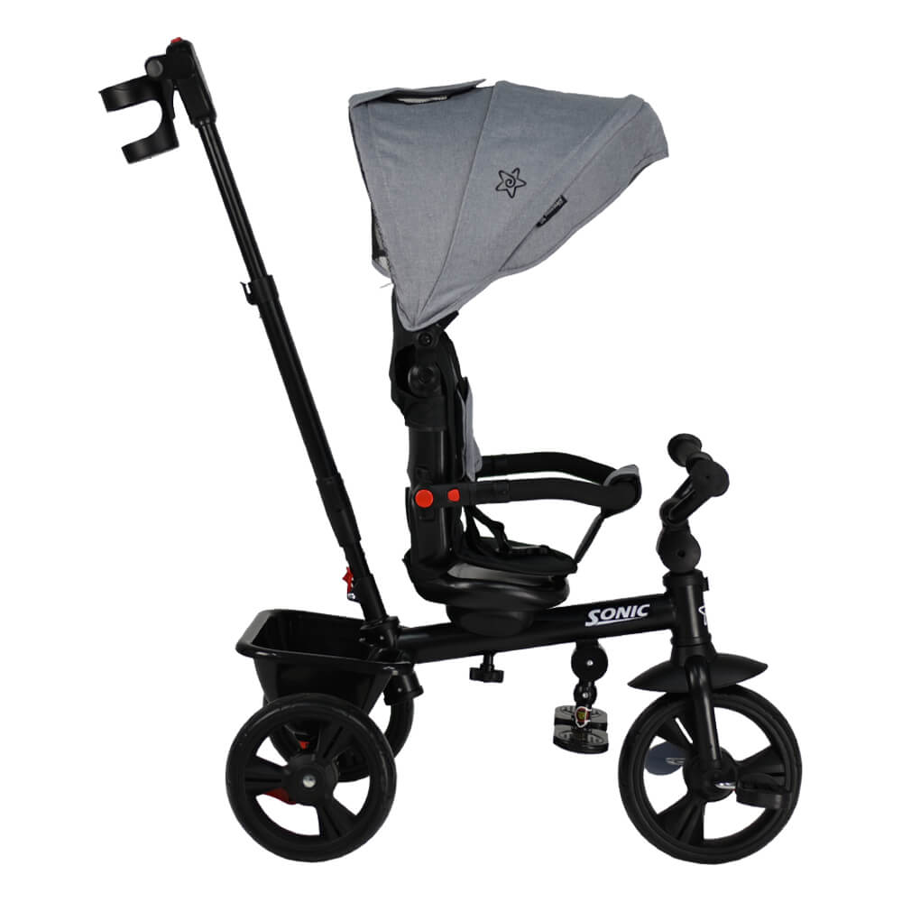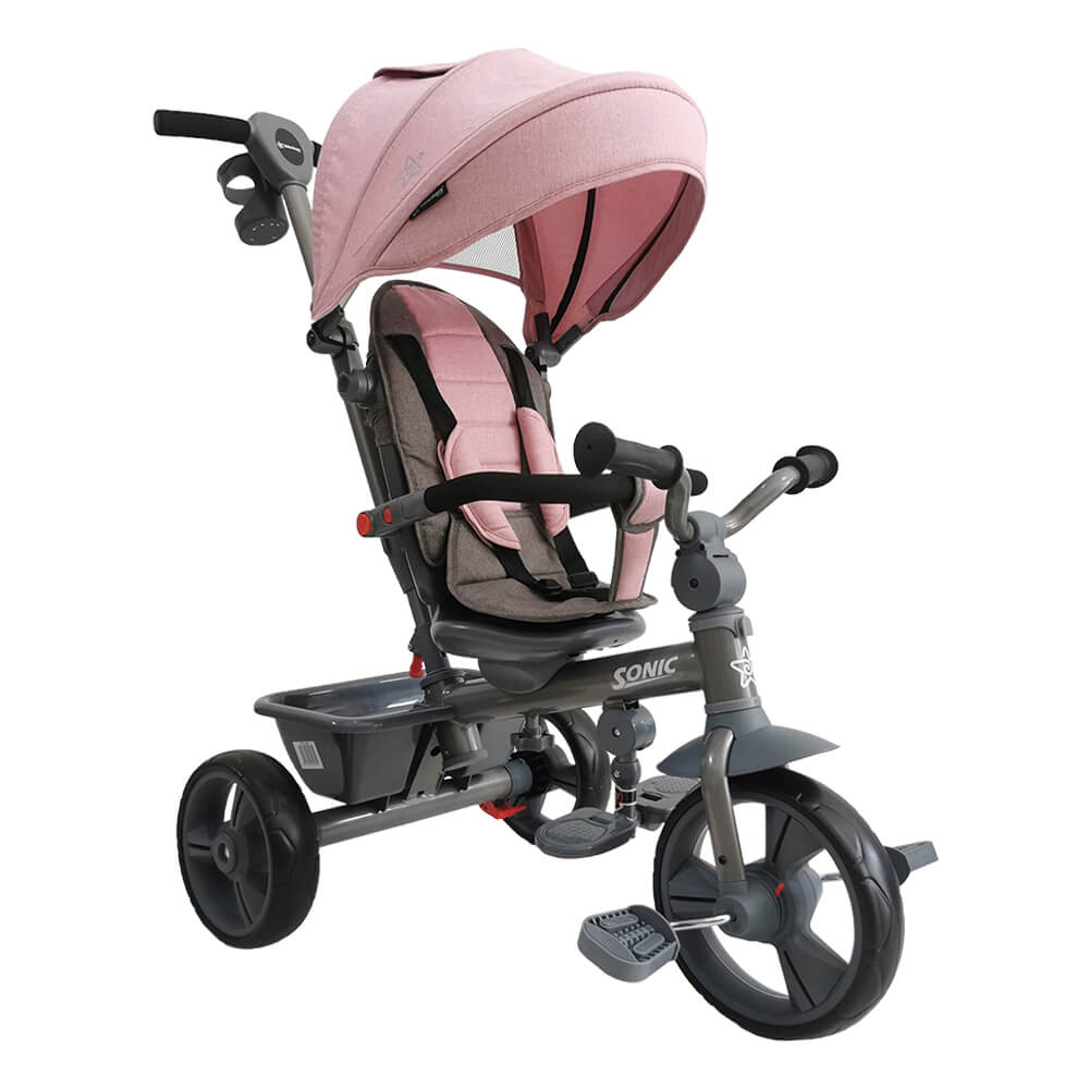 Kratki opis: Novi sklopivi tricikl Bebe Stars Sonic 360° dizajniran je za djecu od 18 mjeseci do 5 godina i omogućuje laganu vožnju do prijelaza s kolica na bicikl.
