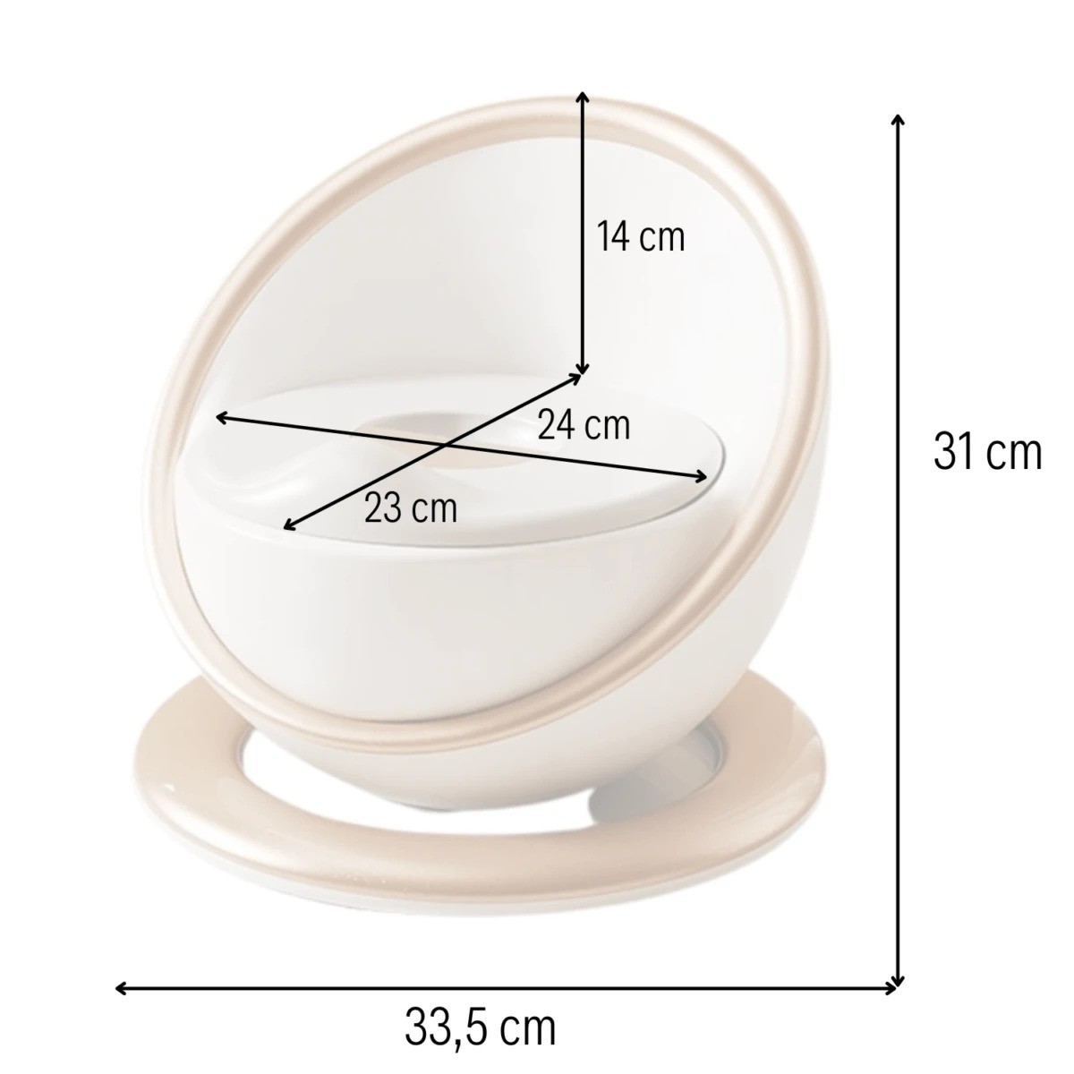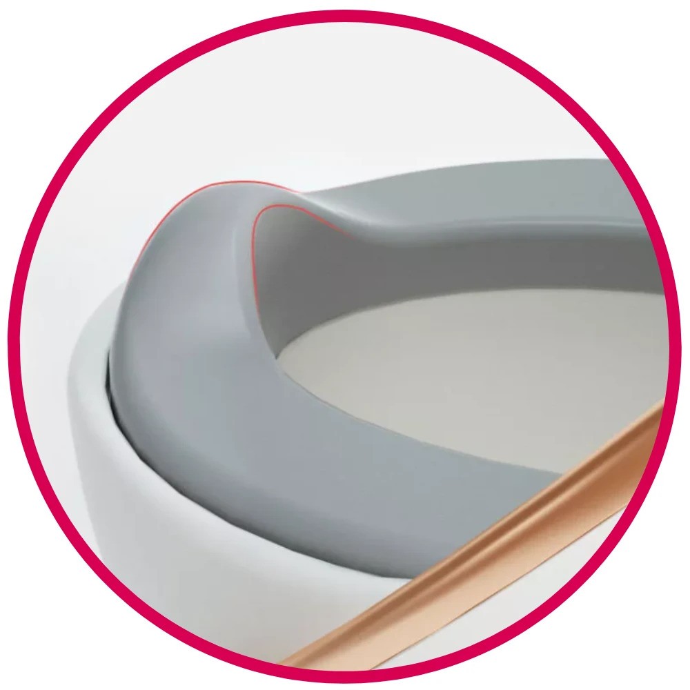 Jedna od najvećih kahlica dostupnih na tržištu. Ima veliki umetak koji se može izvaditi, mekano sjedalo, preklop i neklizajuće dno. Cijela struktura je udobna i ergonomska. Presvlaka također ima površinu protiv prskanja za dječake. Namijenjeno djeci od 18 mjeseci do 30 kg.