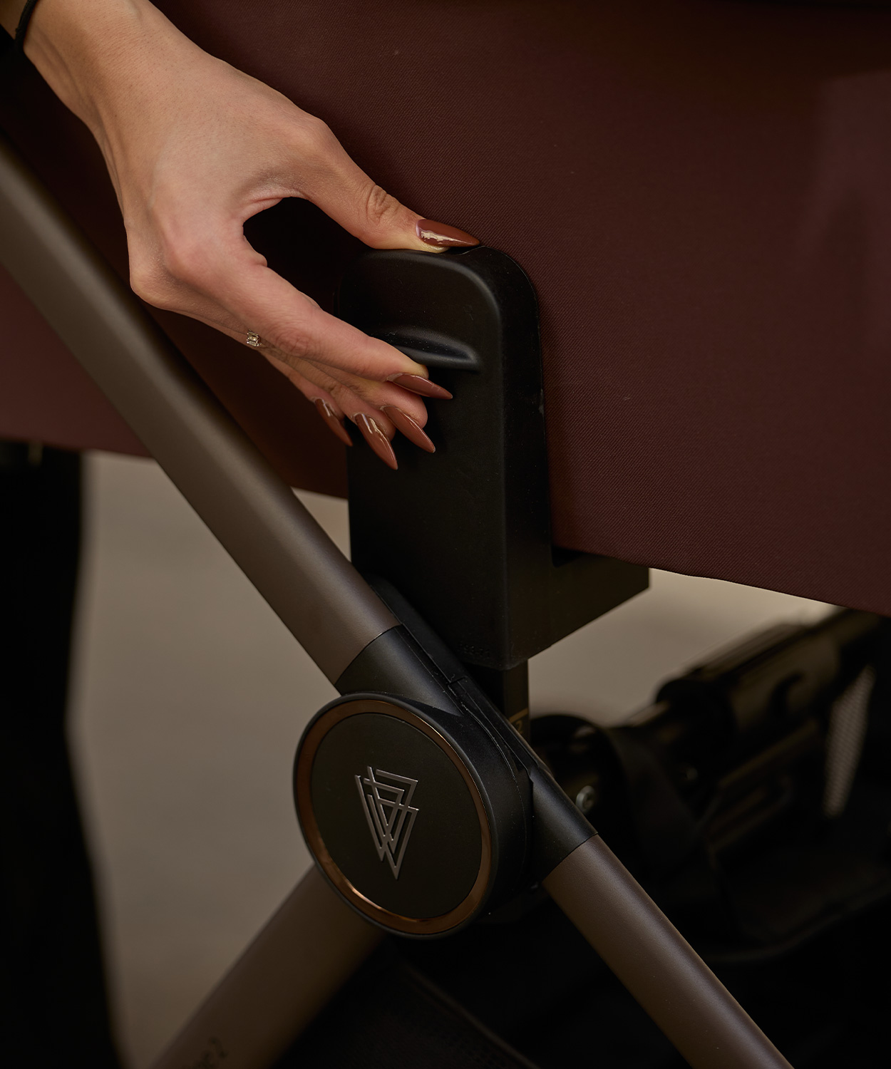Putovanje s nama postalo je još udobnije, a ova značajka je dokaz za to. Od sada su regulatori visine ugrađeni. Zahvaljujući tome, i nosiljka i sjedalo sada se mogu jednostavno podesiti u viši položaj. Podesite visinu tako da odgovara osobi koja gura kolica. Jednostavno odaberite željenu razinu brzim pokretom – i krenite.