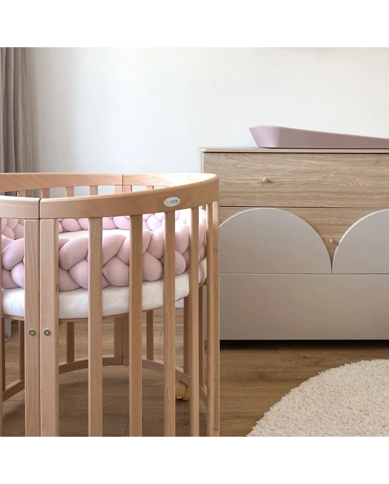 Izrađena od visokokvalitetnog velura, pletenica je mekana i nježna na dodir. Ovaj luksuzni materijal ne samo da poboljšava cjelokupni izgled, već nudi i ugodno taktilno iskustvo. Korištenje velura čini ovu pletenicu ne samo funkcionalnim elementom dječjeg krevetića, već i estetskim detaljem koji nadopunjuje interijer svake dječje sobe.